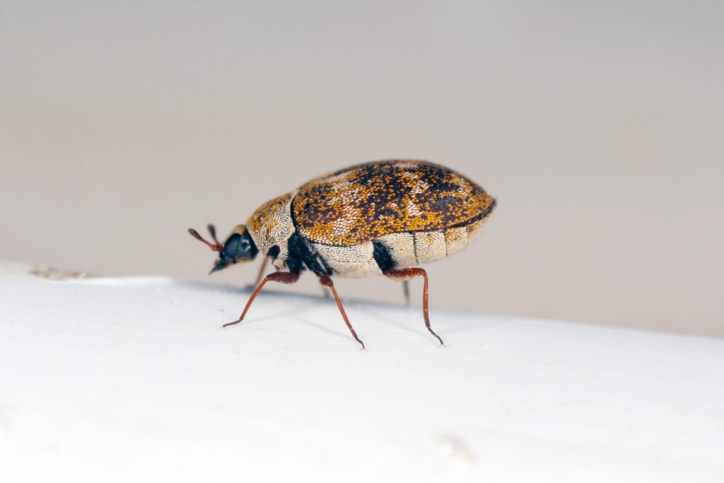 Carpet beetles are typically small black beetles that are approximately 1/8 of an inch long. The adult beetles and larvae both tend to feed in dark, undisturbed areas. Carpet beetles feed on animal fibers, such as wool, silk, fur, feathers, and leather. Their feeding habits make carpet beetles a serious threat to your home, as they can damage clothing, bedding, and carpet. Carpet beetle infestations spread quickly and can cause major damage to your home.